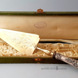 Kūku servēšanas trauciņš, sudrabs, jūgendstils, sudrabs, kopējais svars 111 grami. Ražots Francijā, kastītē.