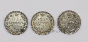 Sudraba monētas - 15 kapeikas. 1915. g. 3 gab.