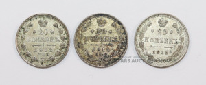 Sudraba monētas - 20 kapeikas. 1913., 1914., 1915. g.