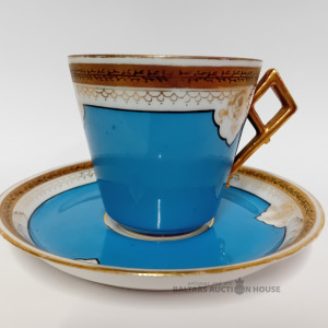 | Nosaukums | Cara laika, mokas izmēra kafijas pāris ,bez zīmoga, Krievijas Impērija, tase 6,5 cm h, 6,7 cm d. |