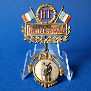 Franču karavīra vervēšanas nozīmīte/piespraude Pirmā pasaules kara laikā, Bon Pour Les Filles (Labi meitenēm).