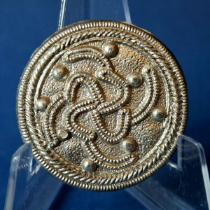 Oriģināla vācu kara ziedojuma nozīmīte no sērijas "Senās rotaslietas ar svastiku" - "Schmuck alter Kulturvölker mit "Hakenkreuz-Symbol" ziemas palīdzības programmai vācu tautai - WinterHilfsWerk - WHW. Šī "Ziemas palīdzības" nozīmīšu sērija tika izplatīta 1941.-1942. gada ziemā. Oficiāli izdota 1941. gada 27.-28. septembrī.