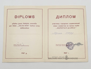 Rīgas Jūrmala. “Zelta Ripa” kluba diploms 1987.