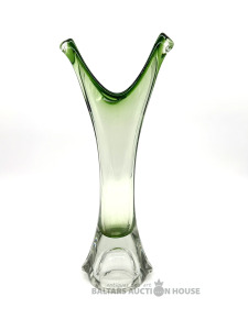 Stikla vāze. Līvānu stikls. Nošķēlums uz pamatnes. H-35 cm.