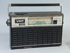 Radio VEF Spīdola 232, nav pārbaudīts, darba stāvoklis nav zināms, neturas bateriju nodalījuma vāks