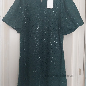 Spīdosa Kokteilkleita tumsi zalas krāsas. Jauna ar birku un originālu cenu. Atbilst L izmēram. Pirkta Dānijā 2025 gadā decembrī. Netīka lietota. Iepakojumā.