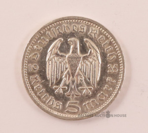 Monēta 5 markas, 1935. g. Sudrabs. Svars 13,93 g