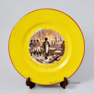 Maskavas ugunskurs. Deserta šķīvis, diametrs 15,3 cm. Korsikas piemiņa. Limoža, Francija. Džačo ir Korsikas galvaspilsēta.