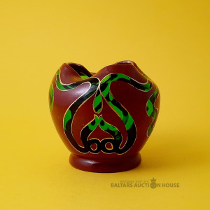 Stikla vāze (vienam ziedam). Zaļš stikls, roku darbs. Augstums: 7 cm.