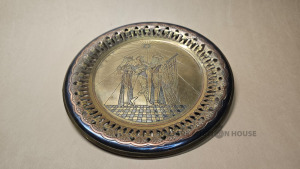 Dekoratīvs šķīvis ar Ēģiptiešu vai Persiešu motīvu un Saldumu trauks? Metals.