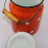 Piena kanniņa ar vāku un koka rokturi. Emaljēts tērauds. Lisičanskas reto metālu rūpnīca. PSR. h=21 cm
