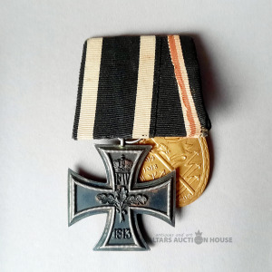 | Nosaukums | Pirmā pasaules kara vācu medaļu stienis, kas sastāv no diviem apbalvojumiem: Dzelzs krusta II šķira (1914): Prūsijas militārais apbalvojums par drosm |