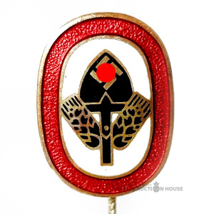 | Nosaukums | Otrā pasaules kara Reiha Darba dienesta (RAD) dalībnieka nozīmīte. Dizains: Ovāla nozīmīte ar sarkanu apmali, kurā uz balta fona attēlota RAD emblēma |