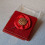 Pie sarkanas auduma rozetes (lentes) piestiprināta piespraude ar Ļeņina attēlu. PSRS.