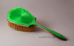 Antīka giloša otiņa. Zaļa. Antīka drēbju otiņa ar giloša emalju, Anglija, piesātināti zaļa. Sudrabs, giloša, emalja, koks, dabīgi sari. 23,5 cm. Krāsains priekšmets.