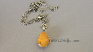 Dzintara kulons ar ķērdi.