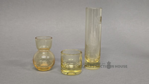 Stikla vāžu komplekts. Iļģuciema stikls. Augstākā h 18 vāze. Krāsains stikls, slīpējums.