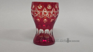 Krāsainā stikla vāze. H 17 cm. Iļģuciema stikla fabrika. Divkrāsains stikls,slīpējums.