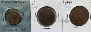 Monētas GREAT BRITAIN 1 penny 1948., half penny 1916., POOR, 3 pence 1959.