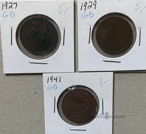 Monētas GREAT BRITAIN half penny 1929., 1941., 1927.