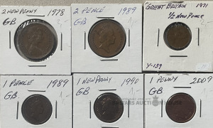 Monētas GREAT BRITAIN 1/2 new penny 1971., 1 new penny 1990., 1 penny 2009., 2 pence 1989., 1 pence 1989., 2 new penny 1978.