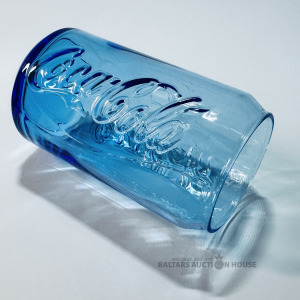 Zila stikla dizaina glāze, zīmols Coca-Cola, metāla bundžas forma, tilpums 330 ml, lāzergravēts reģistrācijas kārtas numurs, no kolekcijas, jaunvērtība.