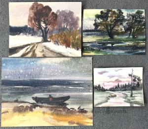 Indulis Purens. Akvareļi. Trīs darbi bez parakstiem. Divi no tiem divpusēji. 29x38 / 23x31 / 19x26 / 16x20 cm.