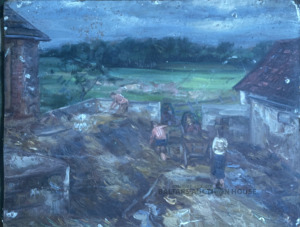 Vilis Linga LAUKU MĀJU PAGALMĀ, k.e. 42,6x55,4 cm, nav parakstīts, nepieciešama restaurācija