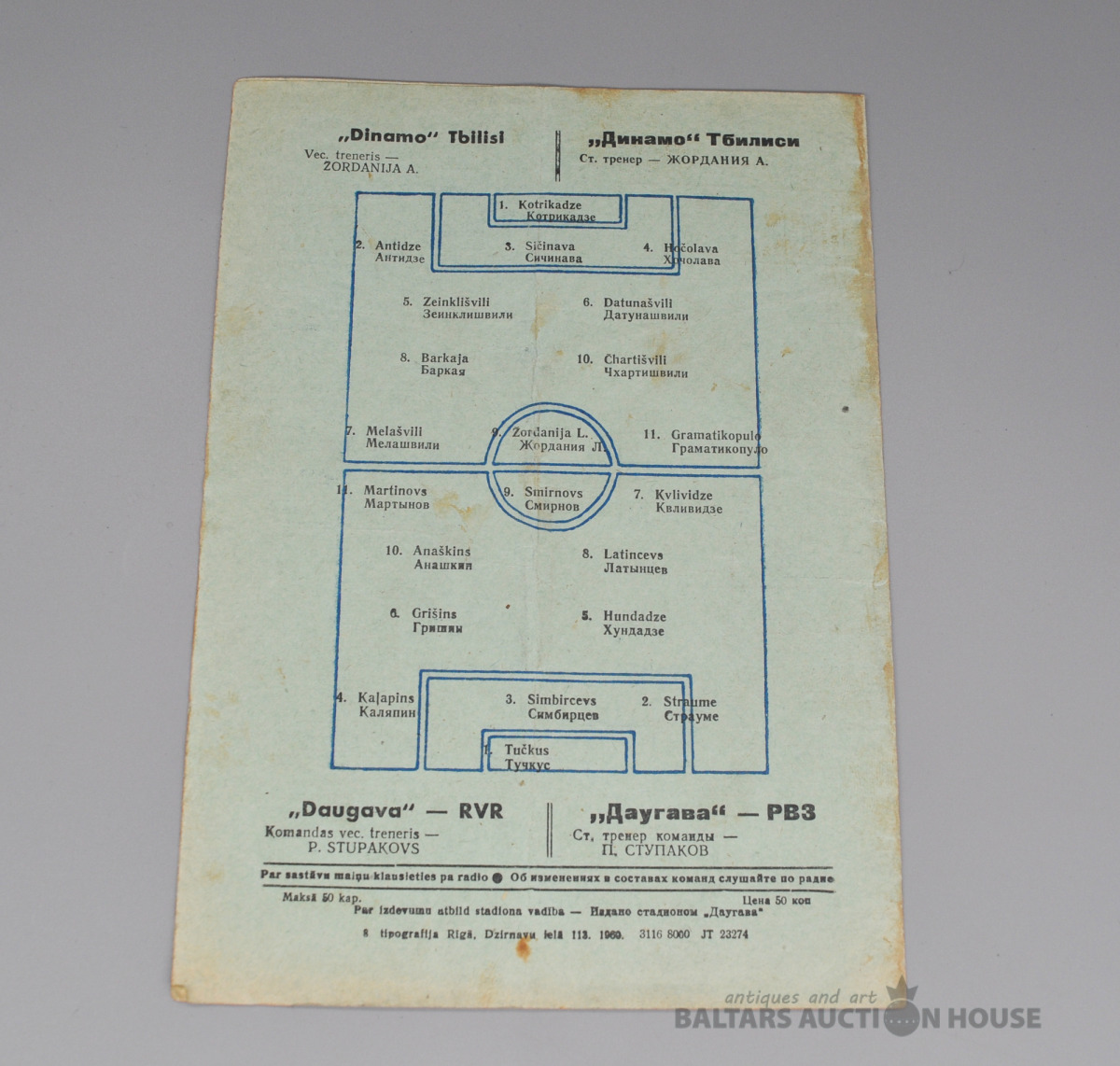 Futbols Programma. "Daugava RVR - Dinamo Tbilisi" Rīga 1960.
