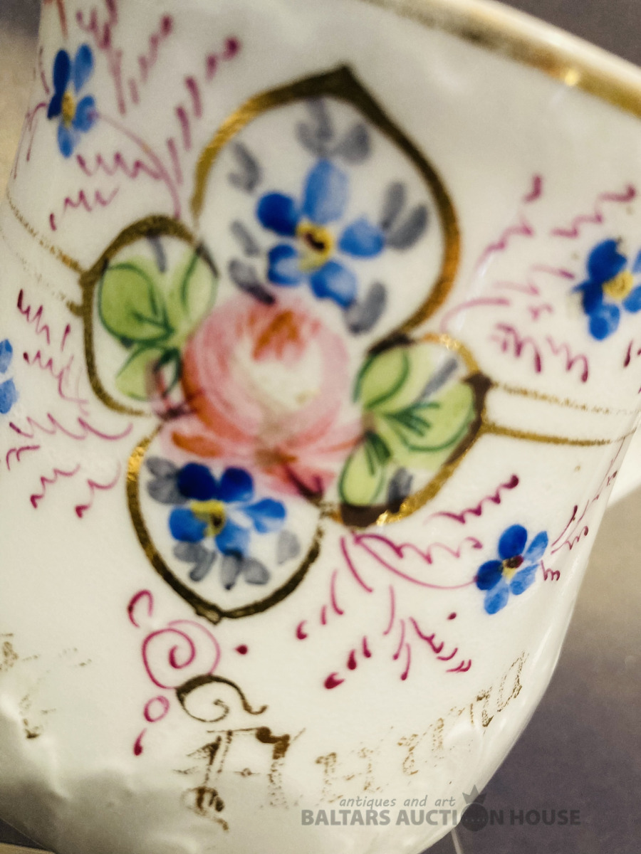 Cara laika rets Jessen duo (ciparu marķējums), plānsienu porcelāns, reljefs, ir sīkas nianses uz apakštases un maza pāris mm plaisiņa uz tases malas (sk.foto), nepilnības nav uzkrītošas.