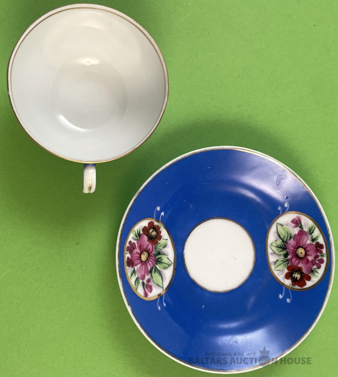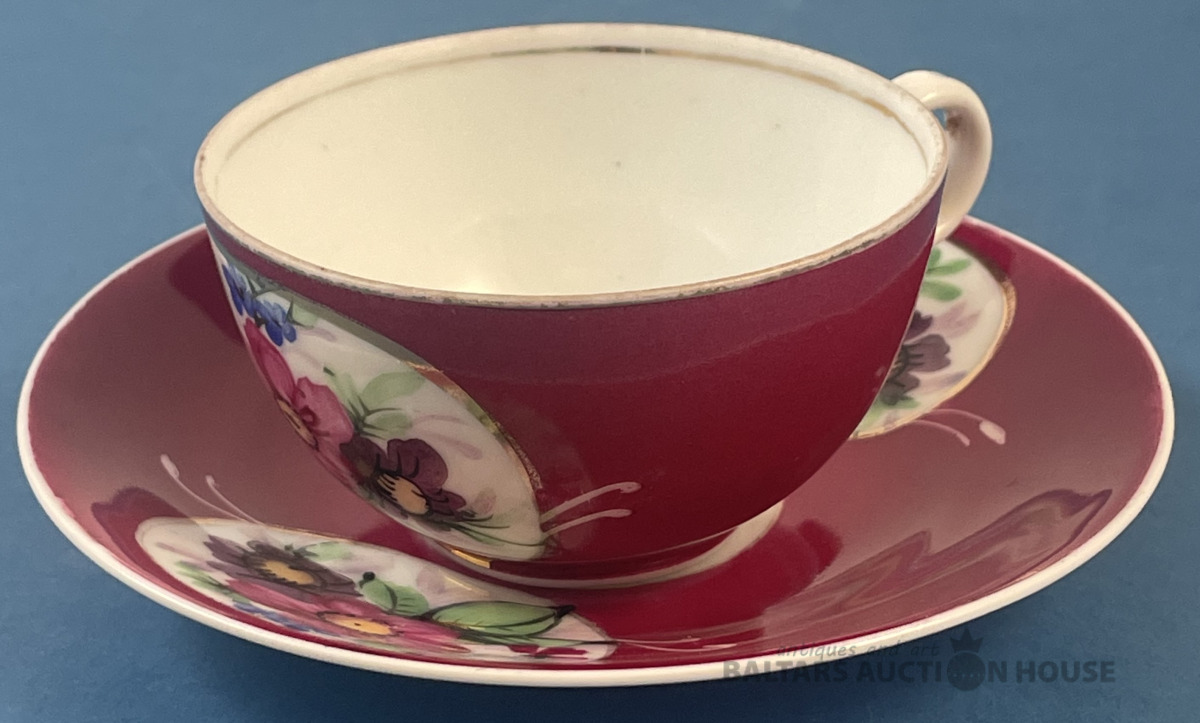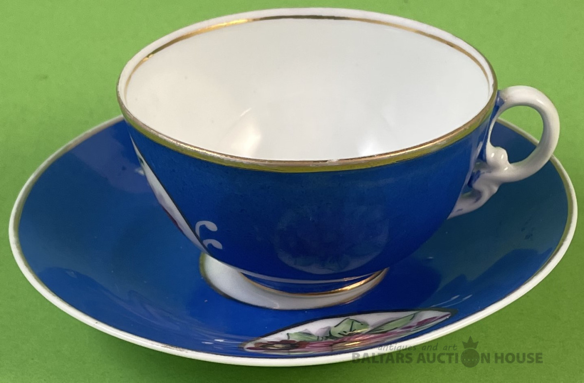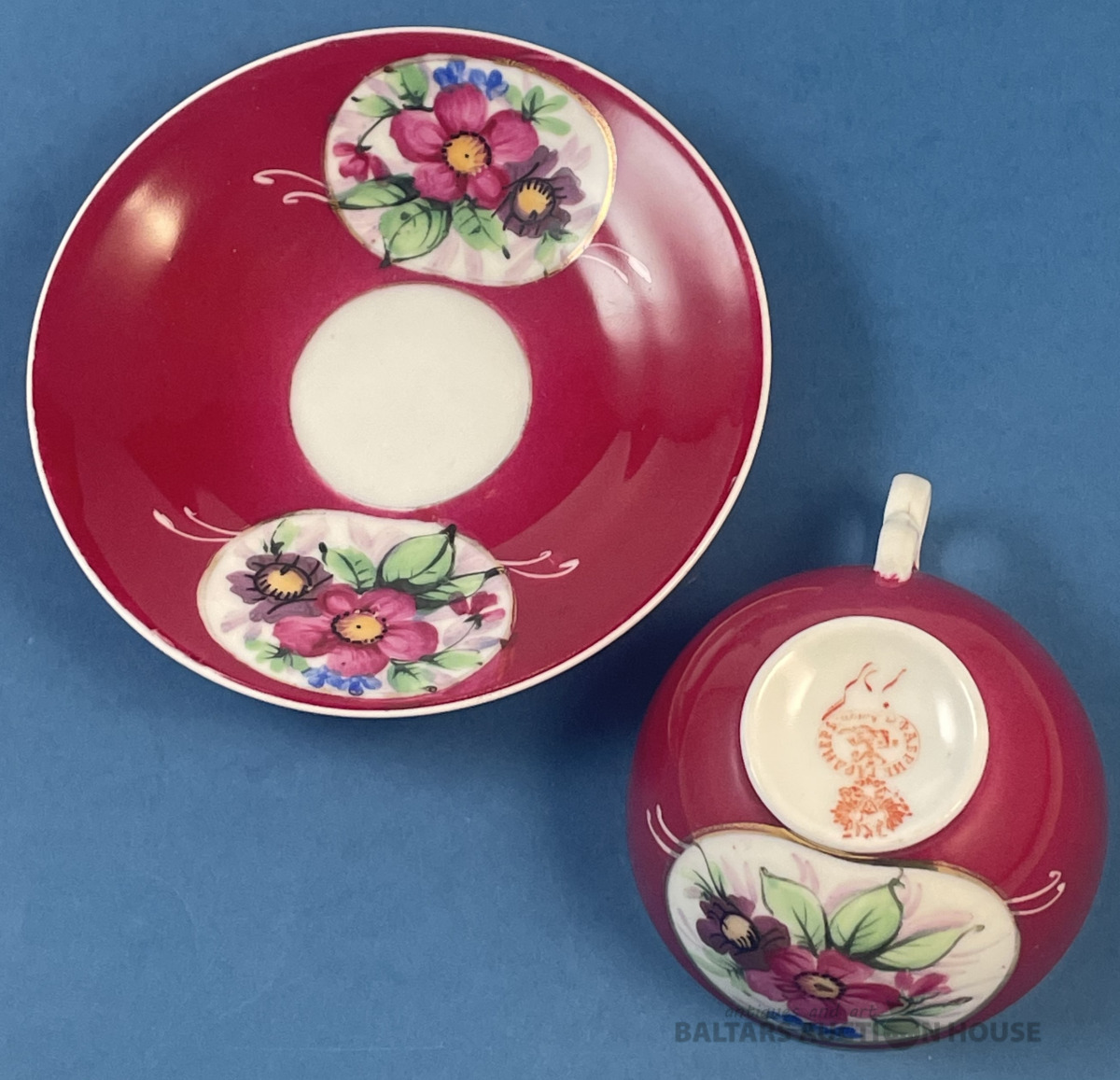 Skaists kafijas pāris, porcelāns, roku gleznojums, zeltījums, ap 1910.g., Gardner zīmogs tuvo austrumu tirgum !!! 1891.gadā Kuzņecovs nopērk Gardnera fabriku un turpina tajā ražot porcelāna izstrādājumus, nemainot fabrikas zīmogu. šīs tases h=4,2 cm, šķīvīša d=12,3 cm