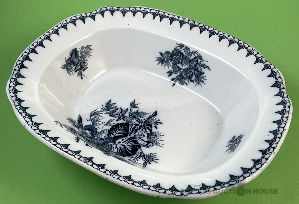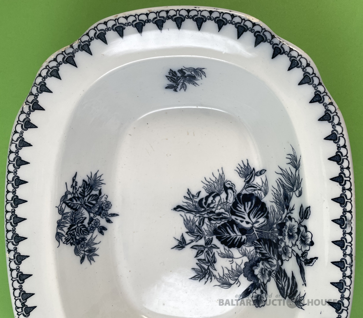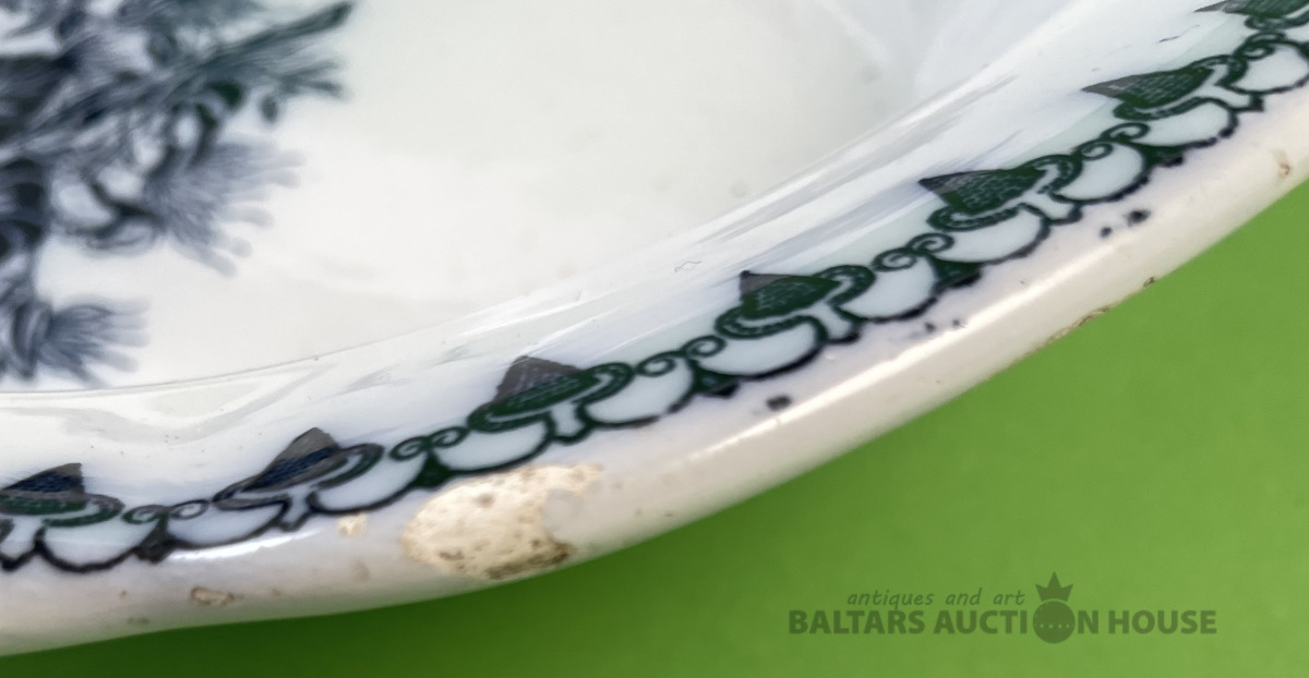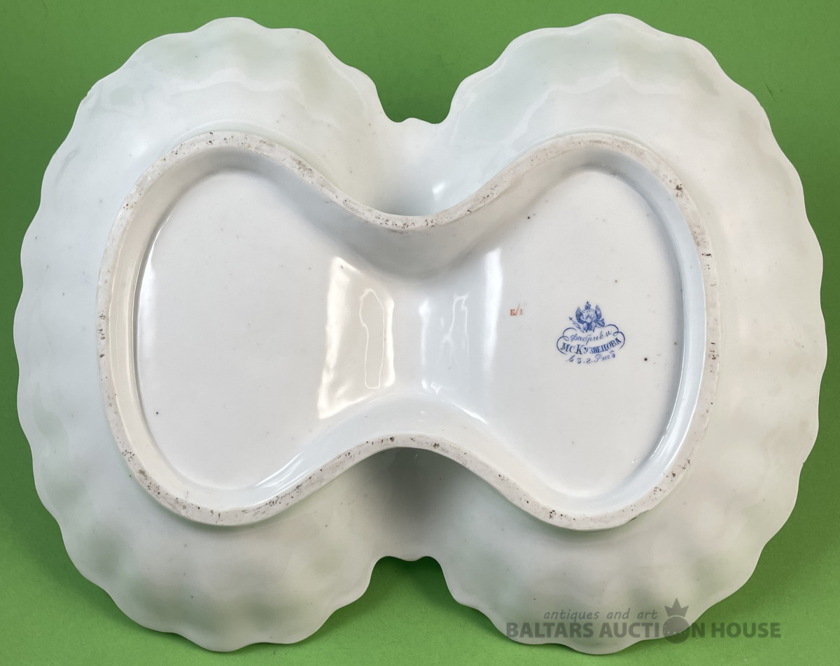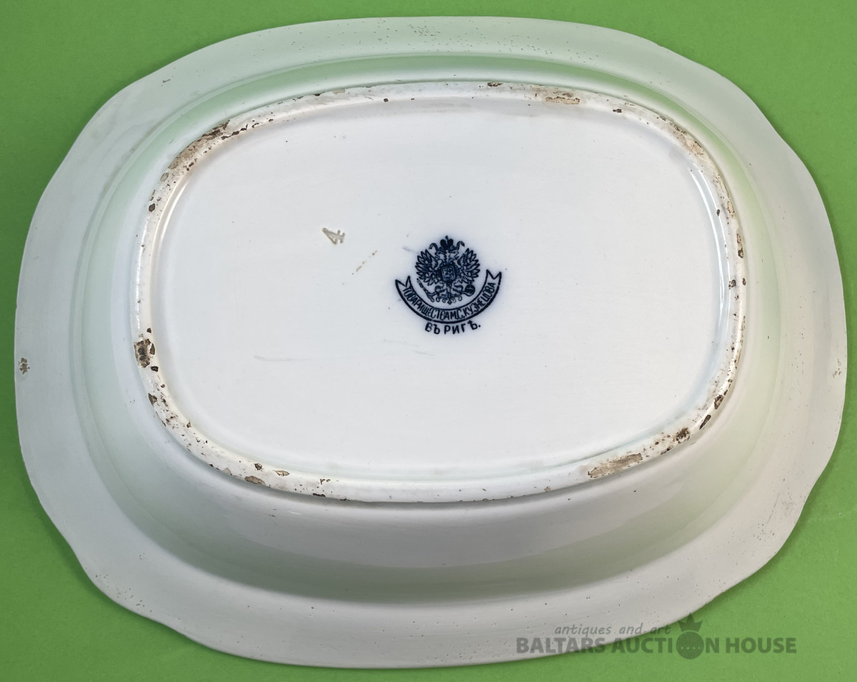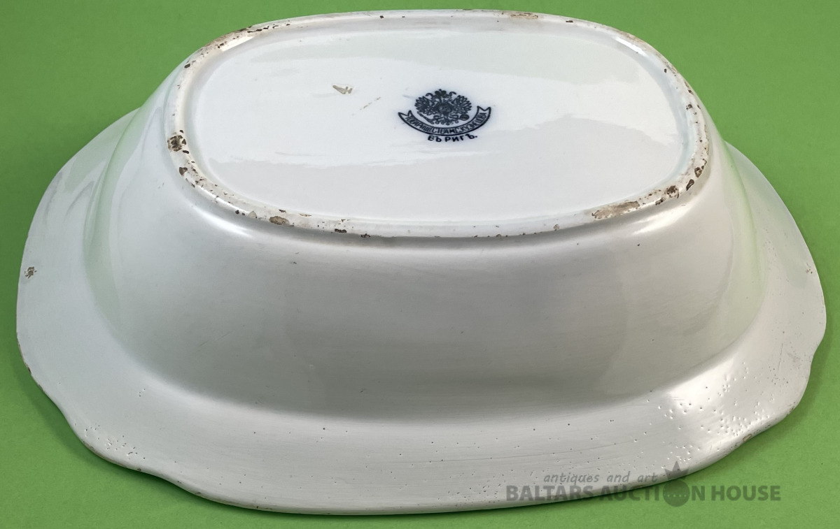 Salātu bļoda, porcelāns, Kuzņecova f-ka Rīgā, XIX g-s., 31,5x25 cm, malai vietām glazūras nodilums, skat. foto !