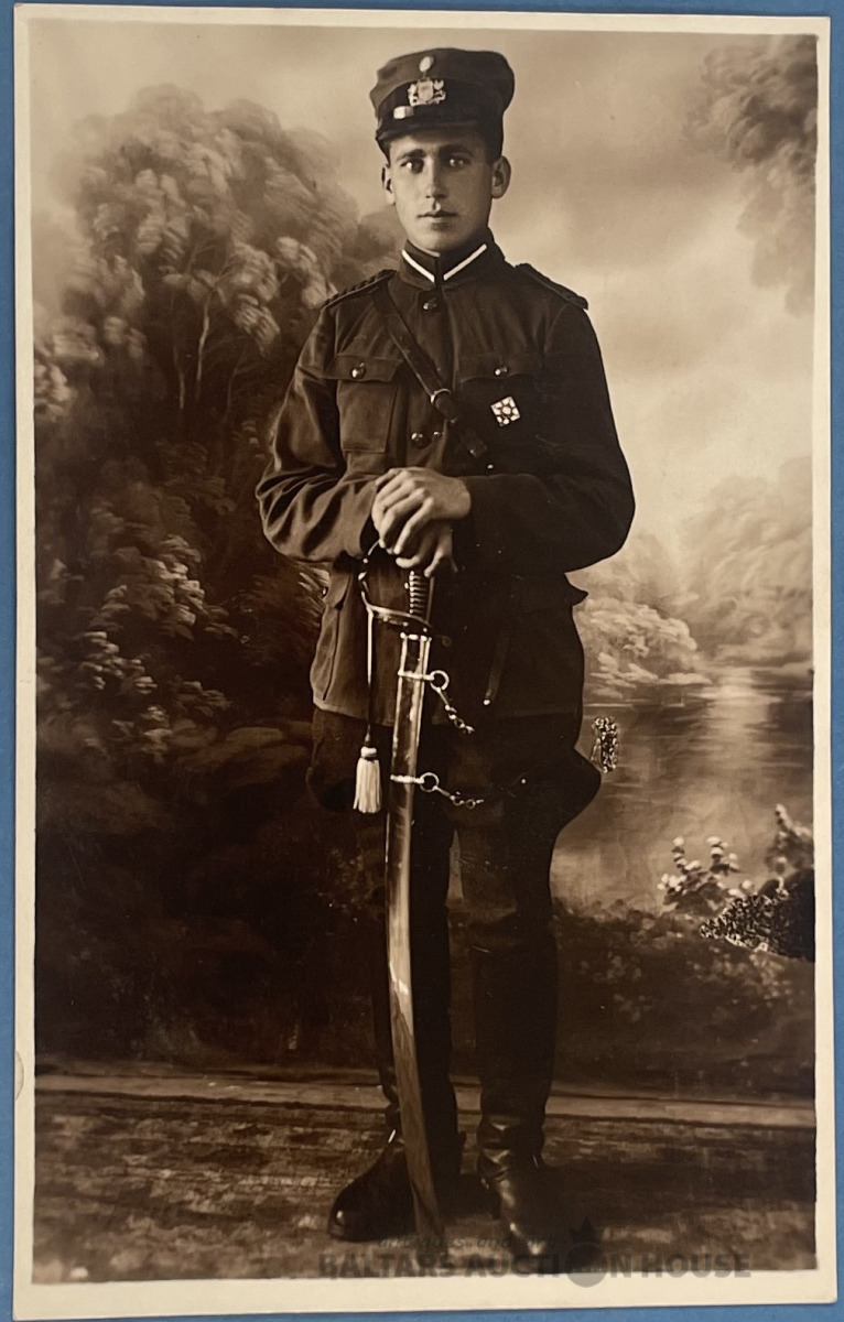 Oriģināls foto: Zemgales Artilērijas pulka karavīrs ar zobenu