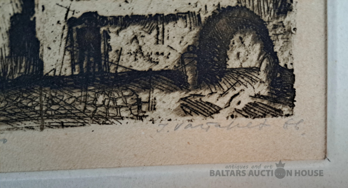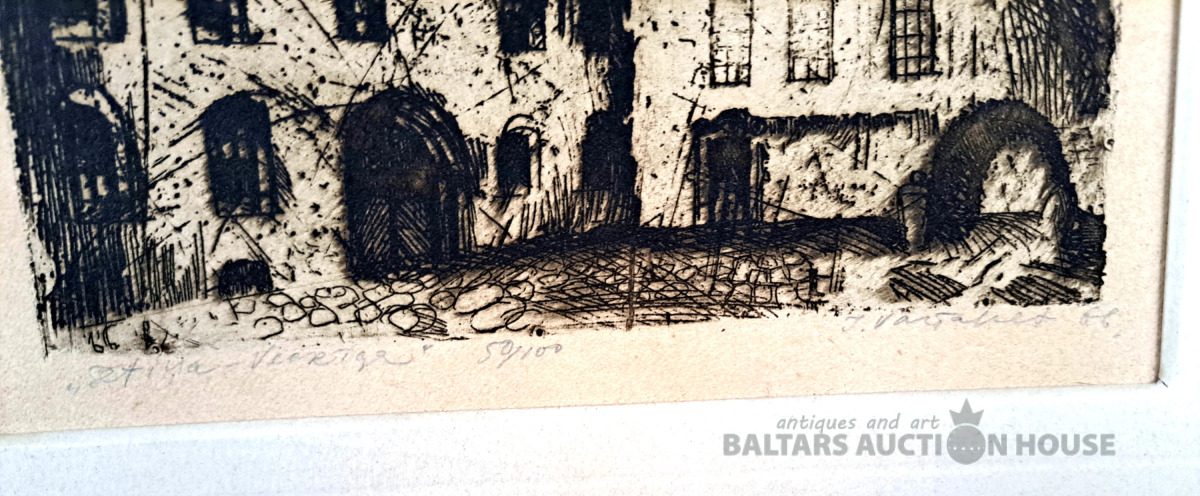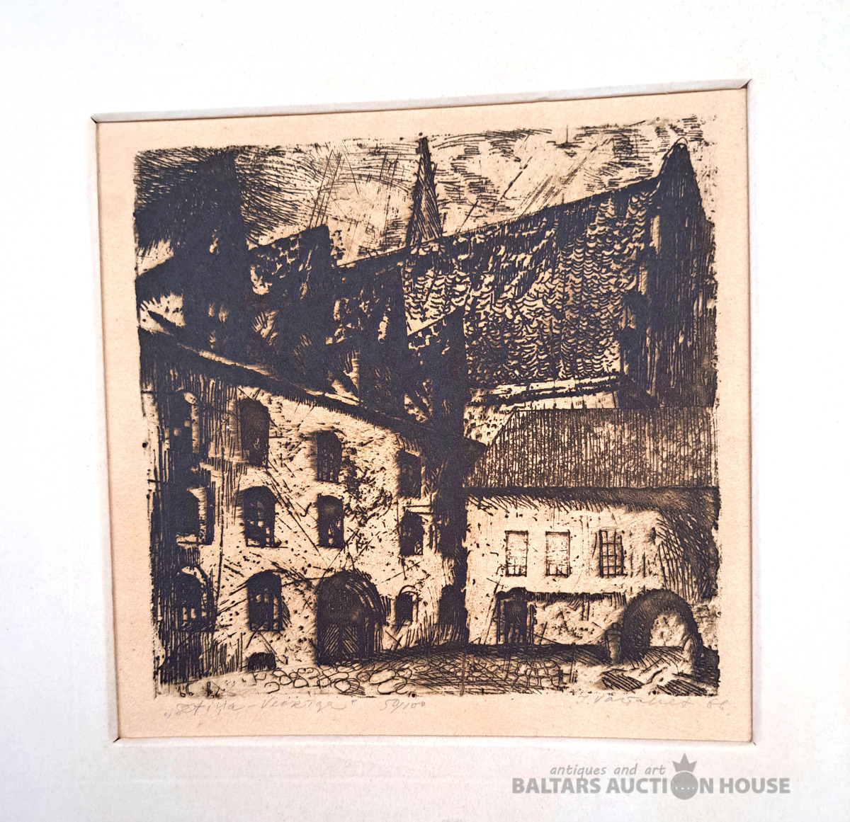 Sētiņa- Vecrīga. oforts 50/100 Izabella Varžapetova (1931-2000), 17x17 cm.