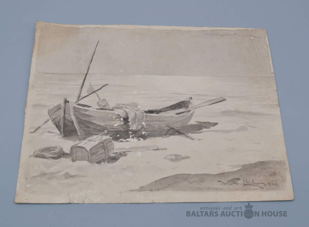 Akvarelis "Zvējnieku laiva" 1920. 21x28 cm