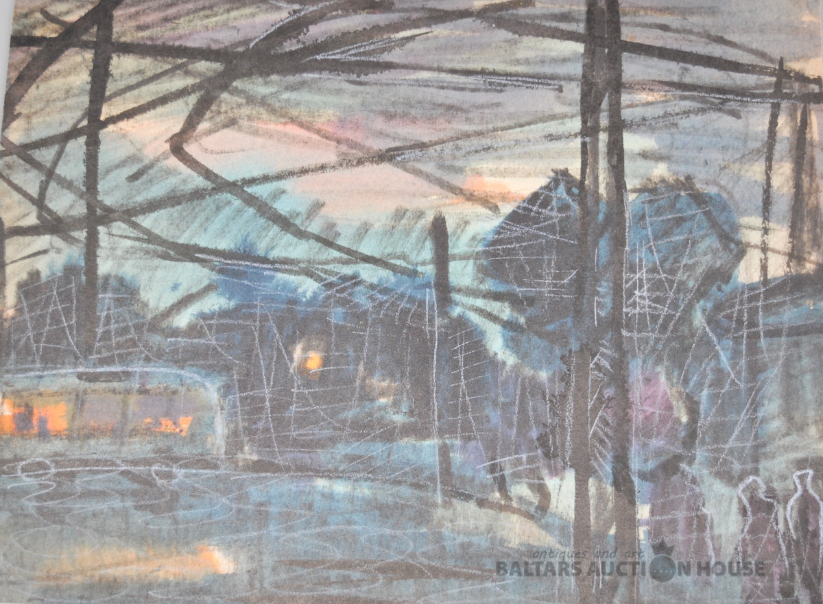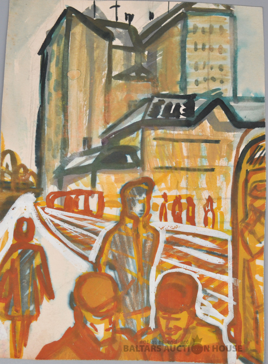 "13 janvāra iela" Aurors nezināms. Papīrs, pastelis, akvarelis. 14.5x20 cm