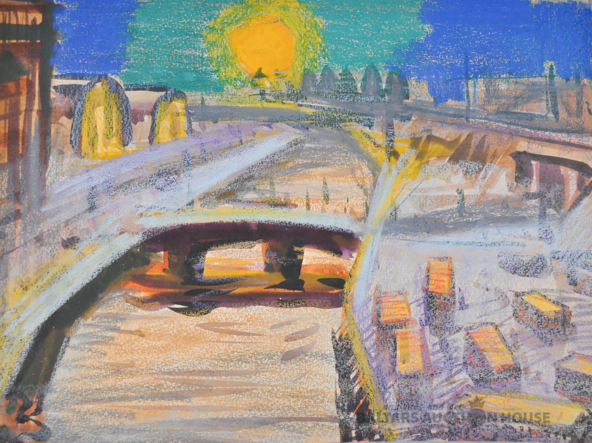 "Rīgas kanāls" Nezināms autors. Papīrs, pastelis, akvarelis. 22x30 cm.
