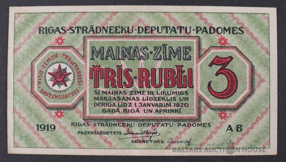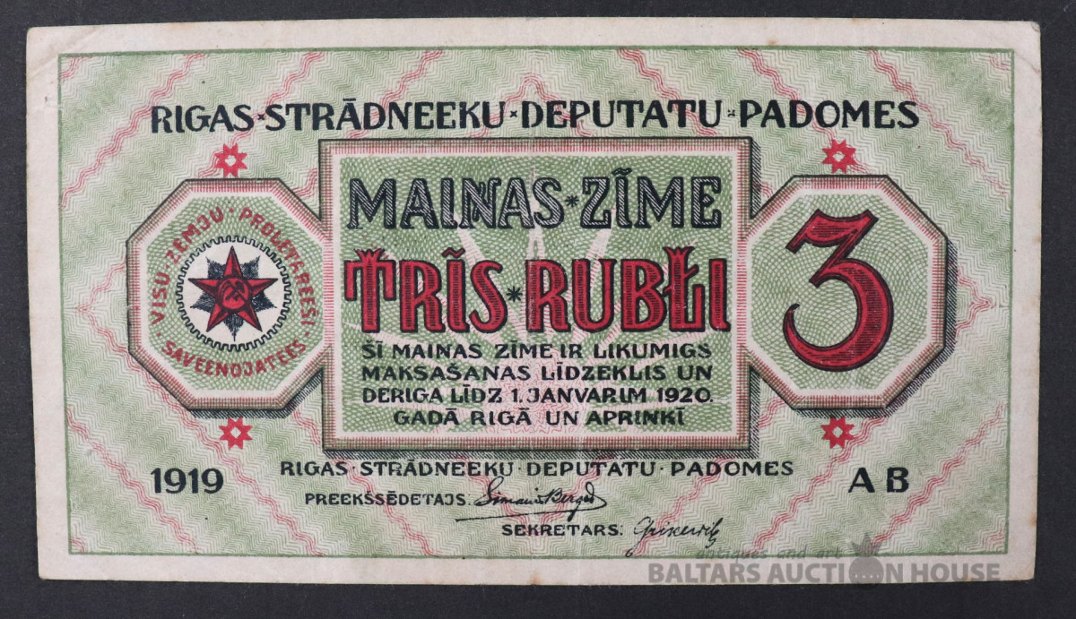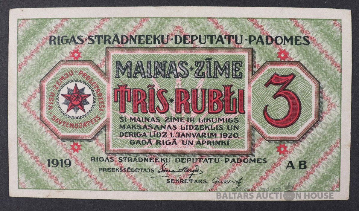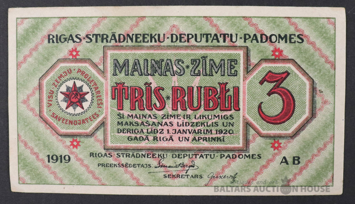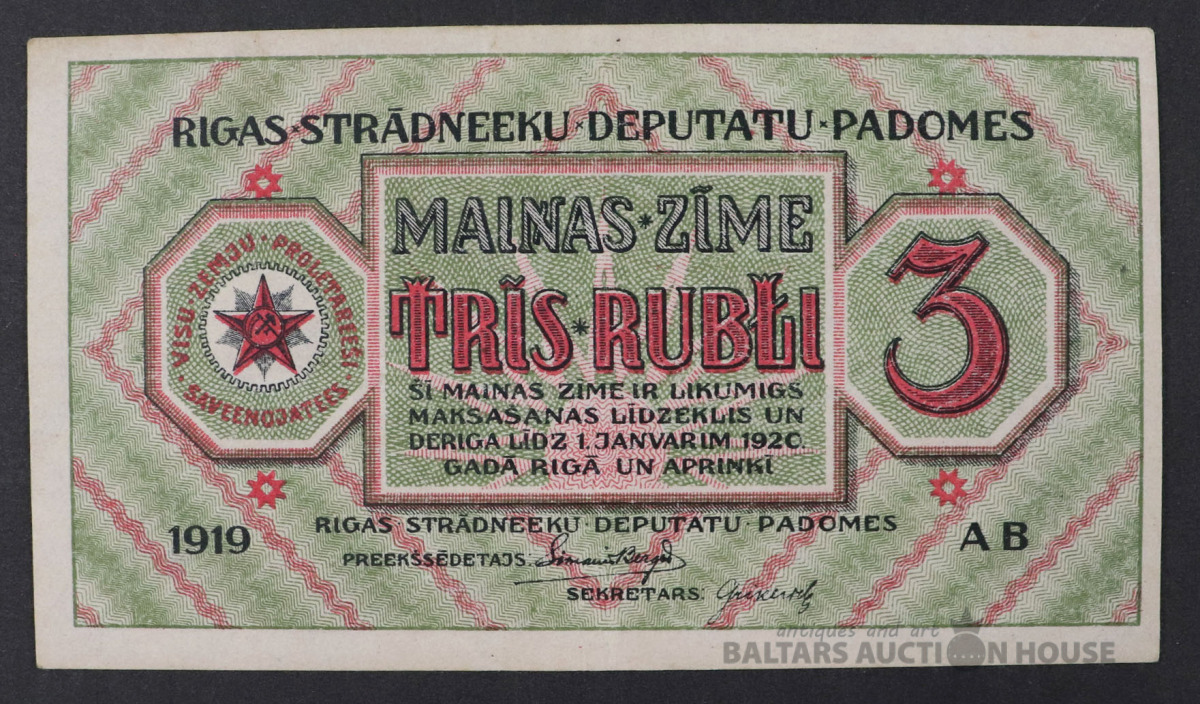 Banknote 3 RUBĻI - 1919.g.