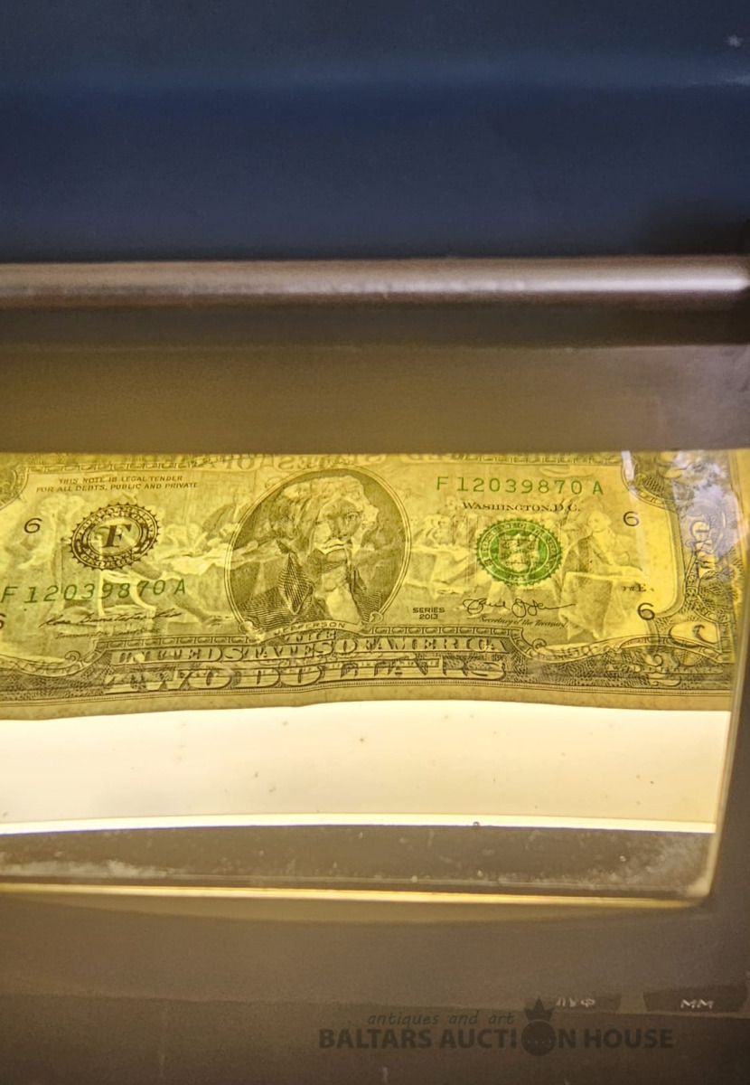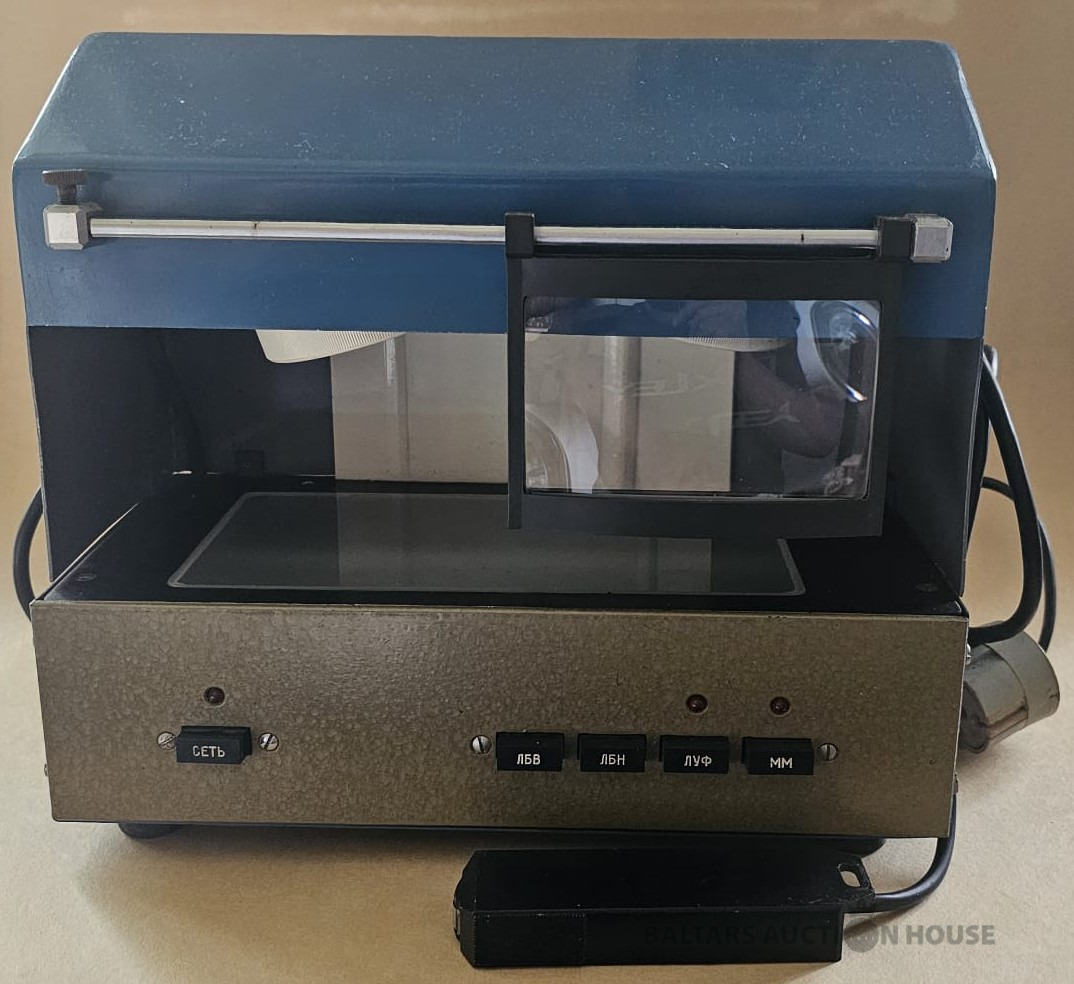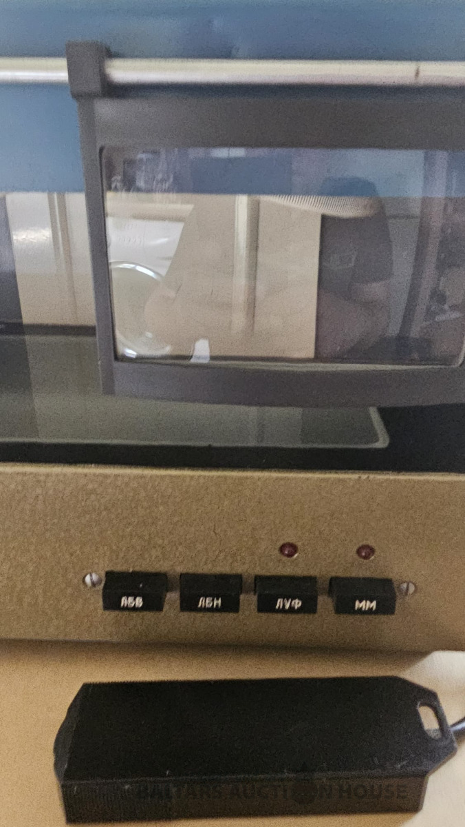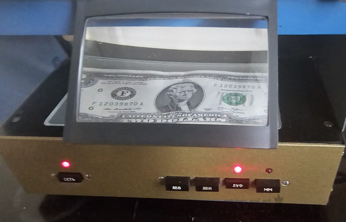 Viens no pirmajiem un ari pēdējiem PSRS laika valūtas detektors, ideālā pilnīgā darba kartībā.1992, izmēri 28*25*14cm