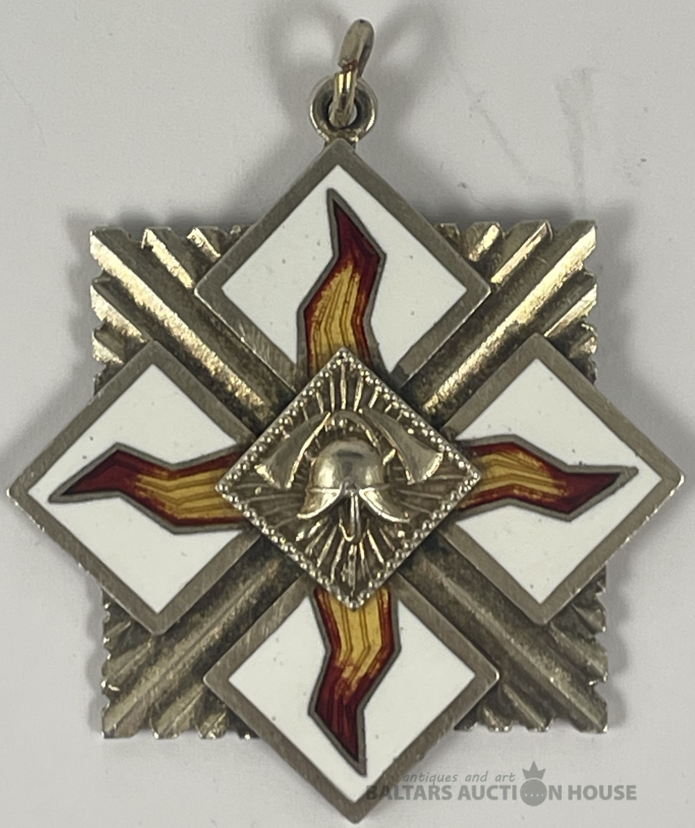 Ugunsdzēsēju ordenis sudrabs 875, 4,4x4 cm, Ulmaņlaiki.