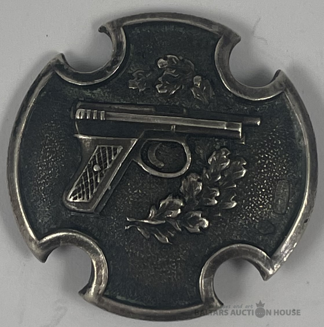 Nozīme Par teicamu šaušanu ar revolveri, sudrabs 875, 3,1x3,1 cm