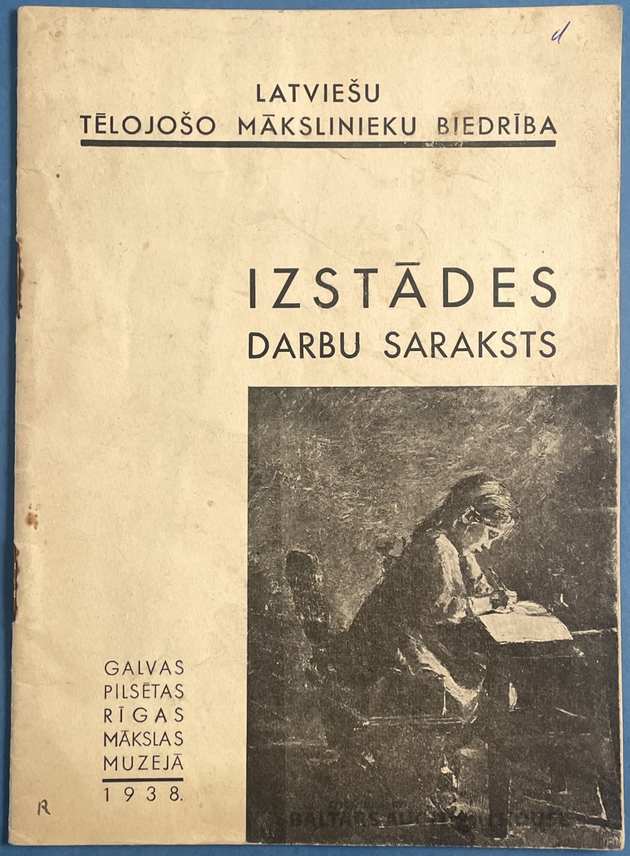 Katalogs TĒLOJOŠO MĀKSLINIEKU BIEDRĪBAS izstāde 1938.g.