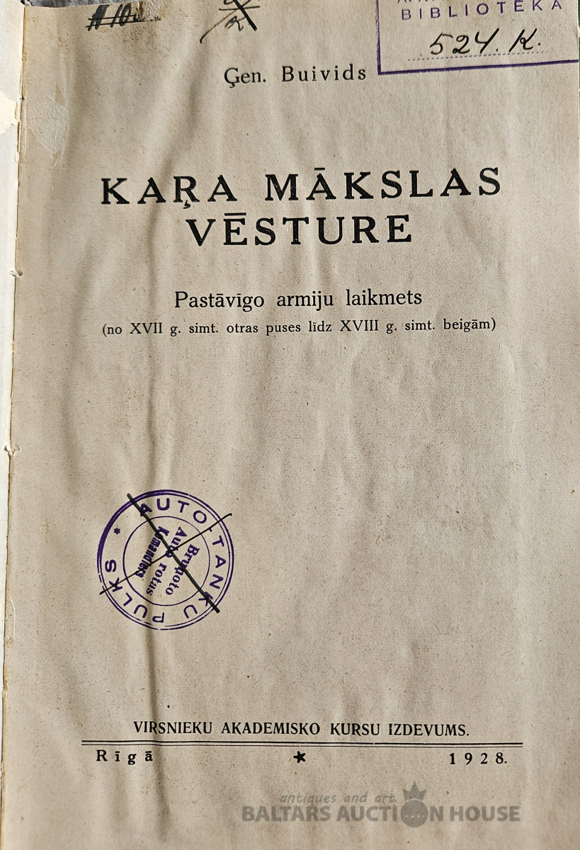 Ģenerālis J.Buivids "Kara mākslas vēsture "Patstāvīgu armiju laikmets. 1938 g. Virsnieku akadēmisko kursu izdevums.