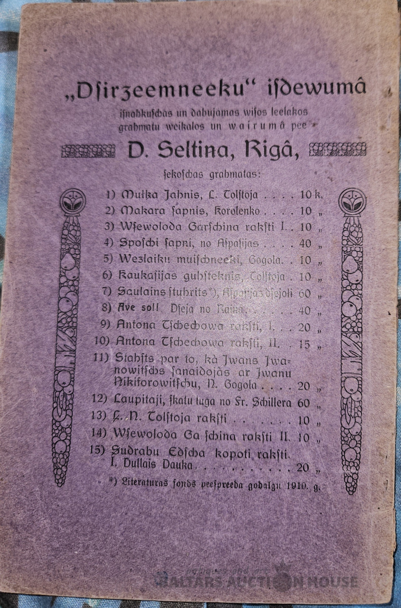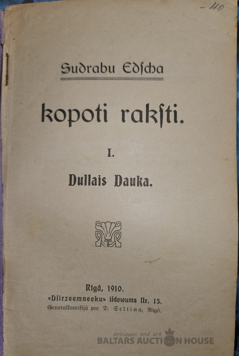 Sudraba Edžus kopoti raksti I. "Dullais Dauka" 1910 "Dzirzemnieku" izdevums.