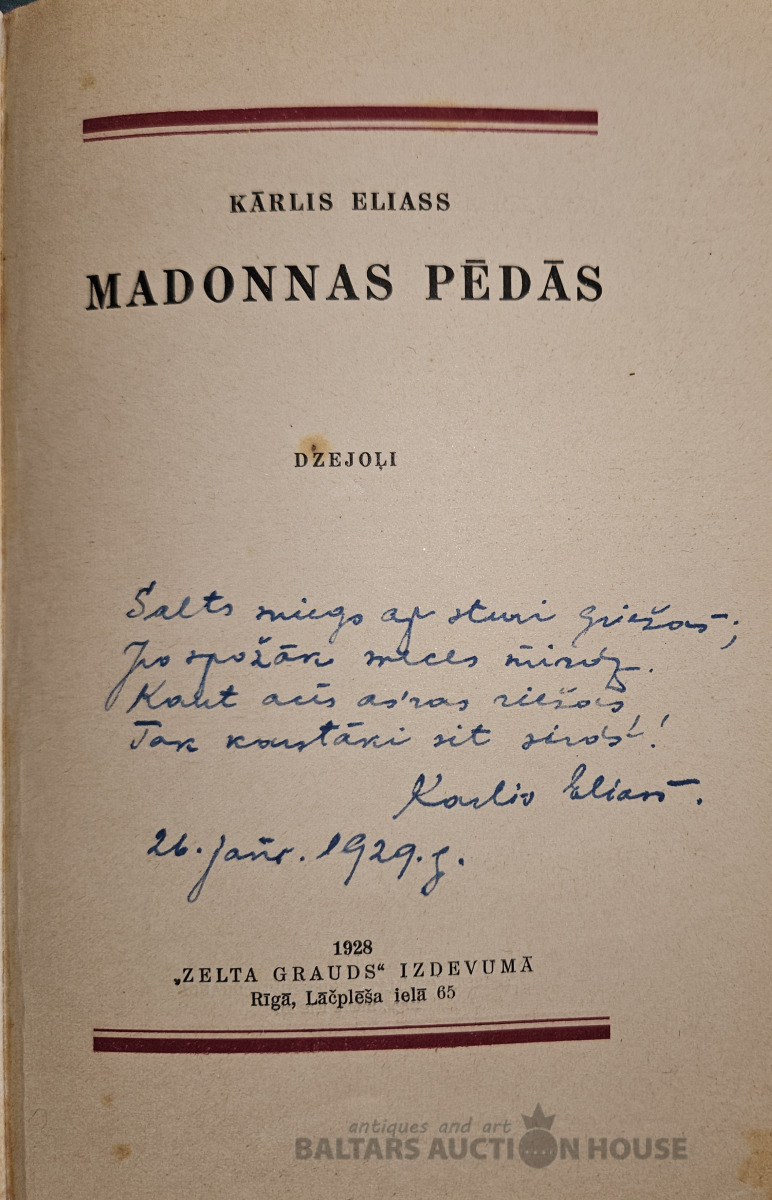 Kārlis Eliass " Madonnas pēdās".Ar autora autogrāfu.