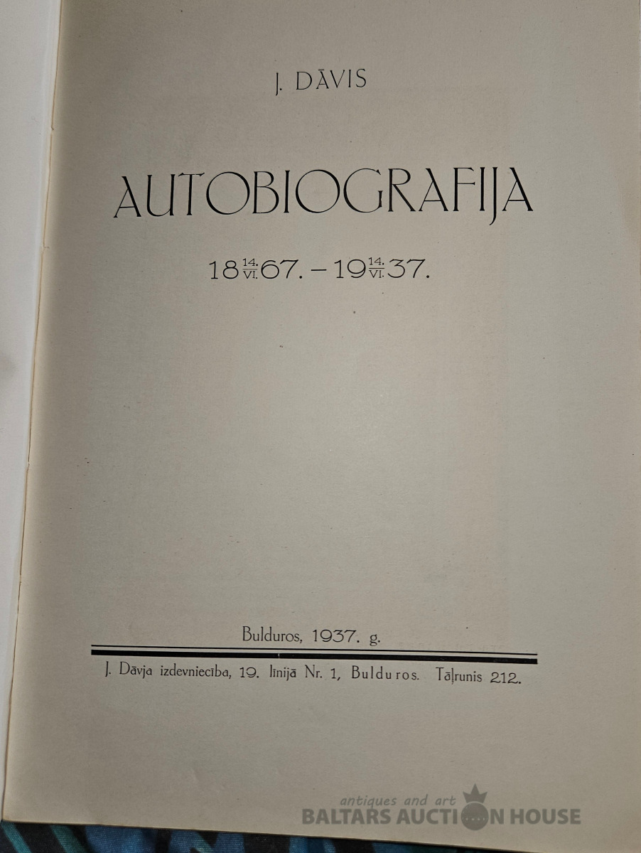 J.Dāvis" Autobiogrāfija 1867-1937" Bulduros 1937.g