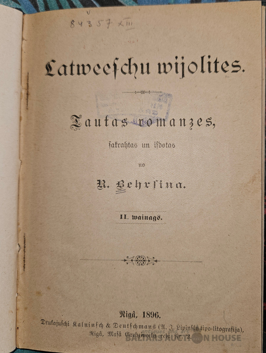 No K.Bērziņa " Latviešu vijolītes" Tautas romances 1896 g.