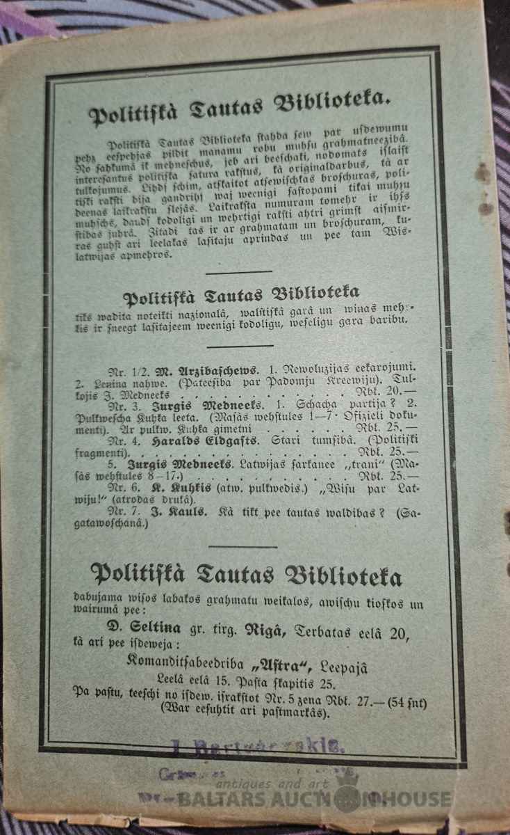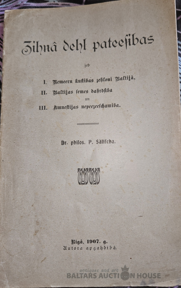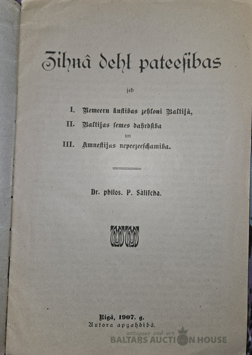Dr.phil.P.Zālite " Cīņa dēļ patiesības " 1907 g. Autora apgāds.