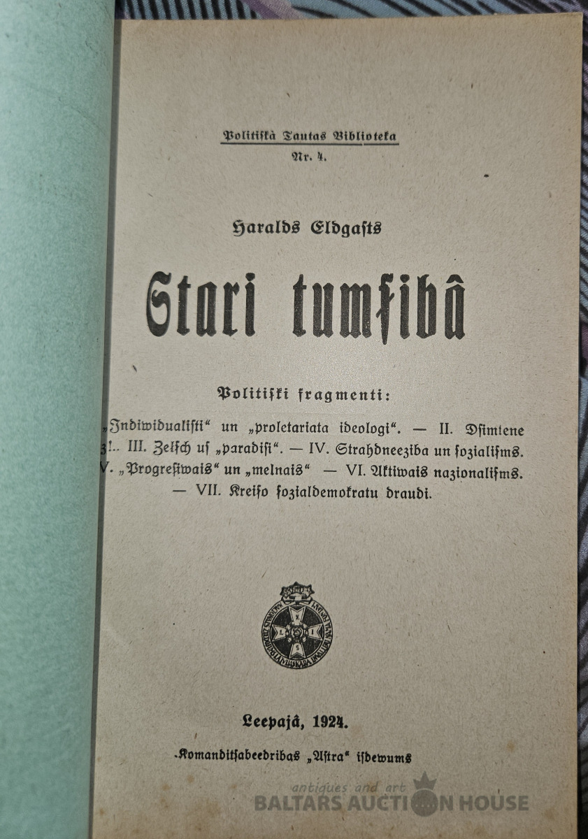 Politiskās Tautas bibliotēka Haralds Elgasts " Stari tumsībā" 1924 gads