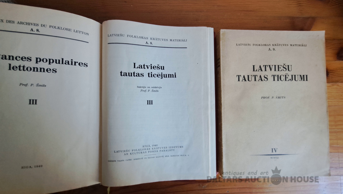 Latv. tautas ticējumi 1-4 pilns komplekts., !. sēj. netīrs vāks, tālāk viss smuki (skat. foto), 3sēj. iesiets cietos vākos.